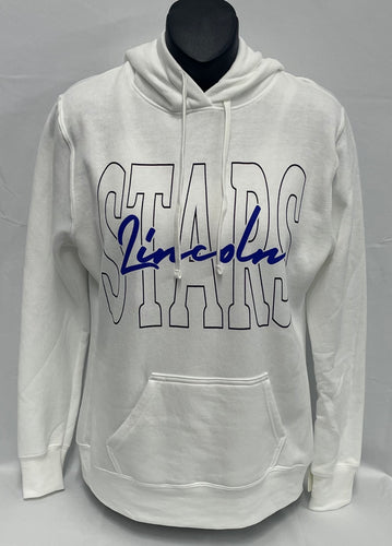 Women's White Cursive Lincoln, Block Stars Hoodie
